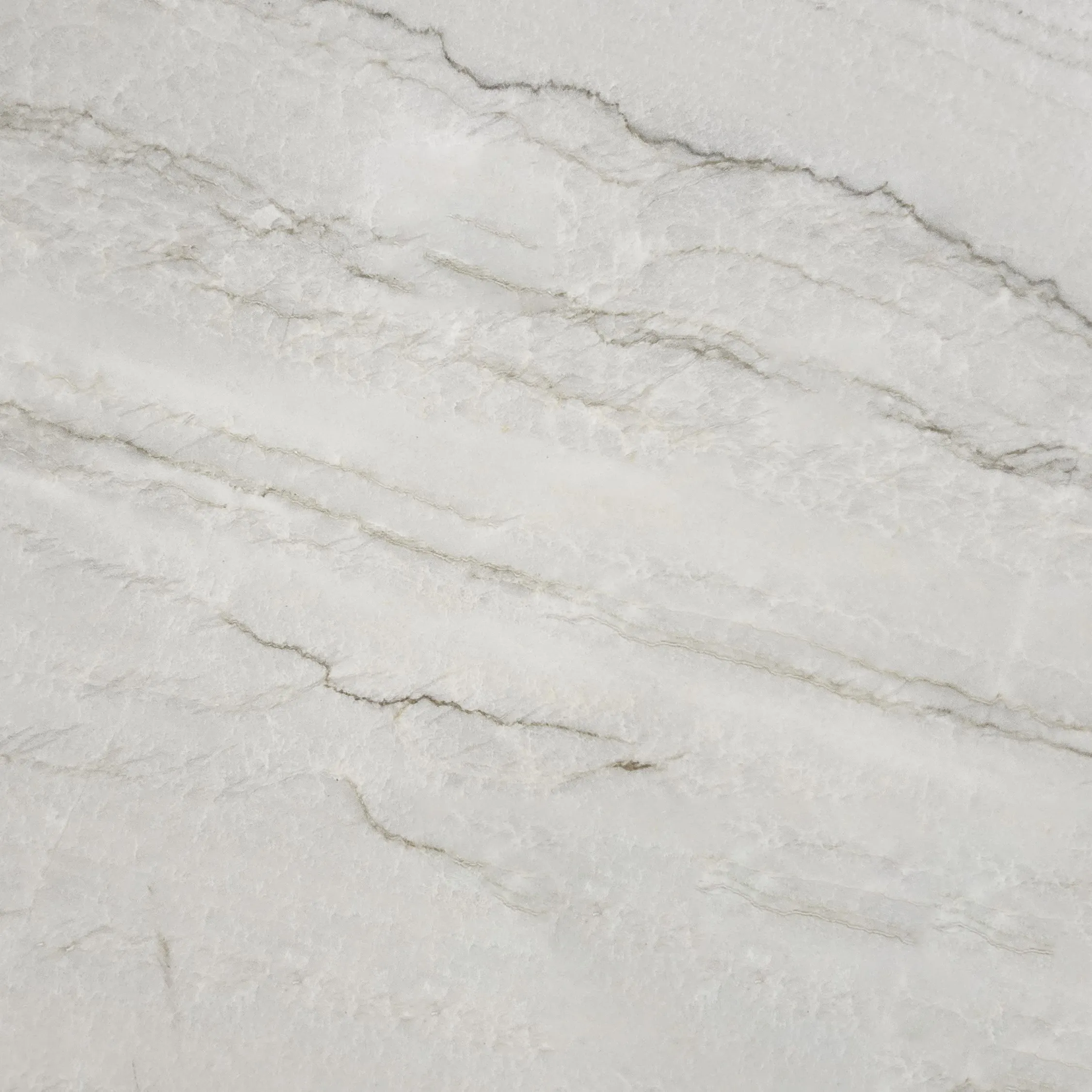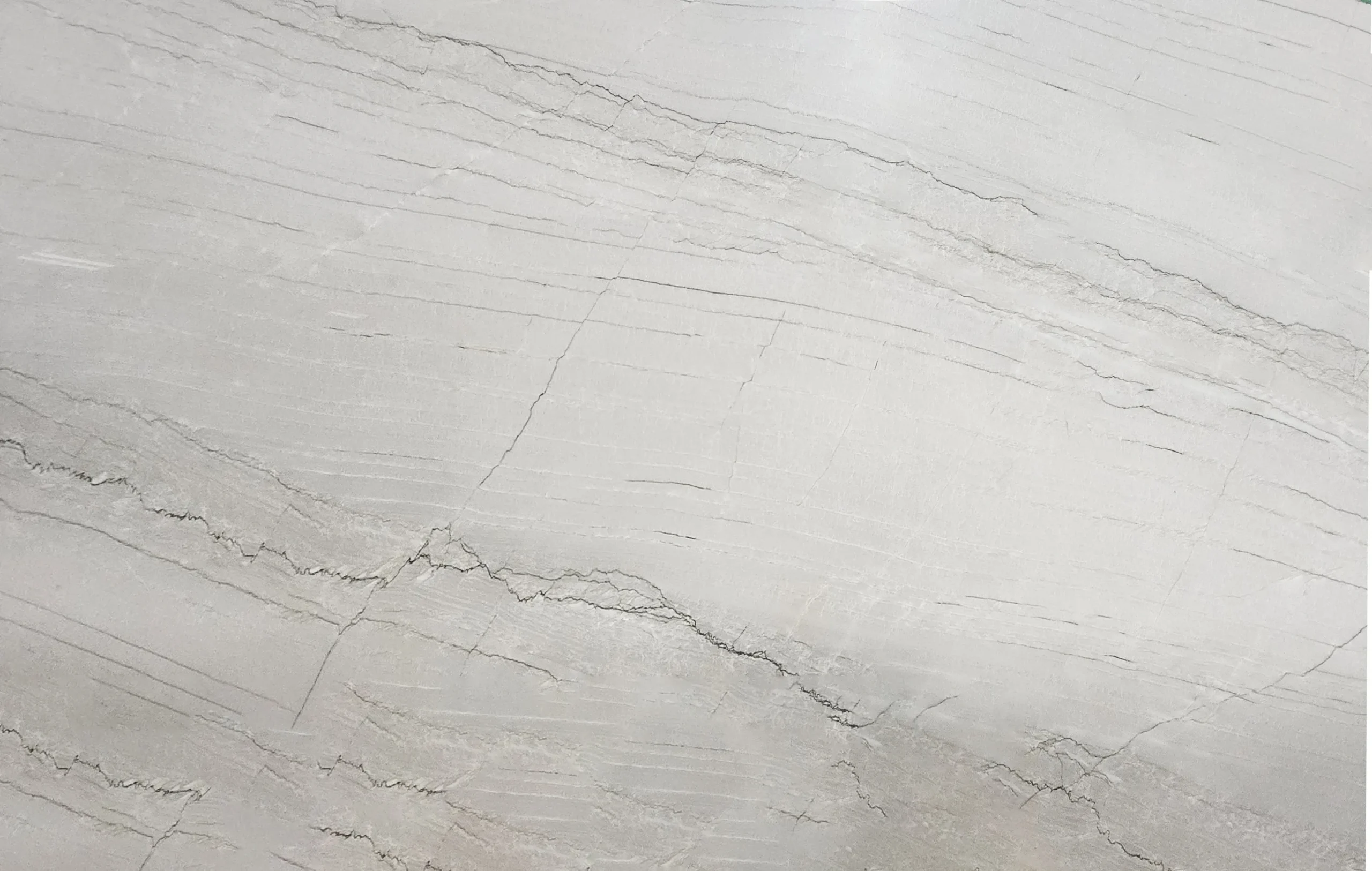 Description: Quartzite Blanco Perla, a premium natural stone that blends luxurious aesthetics with unmatched durability. This stunning quartzite features a soft white and light gray background, elegantly accented with delicate veining and subtle movement, making it a sophisticated choice for both modern and classic designs.