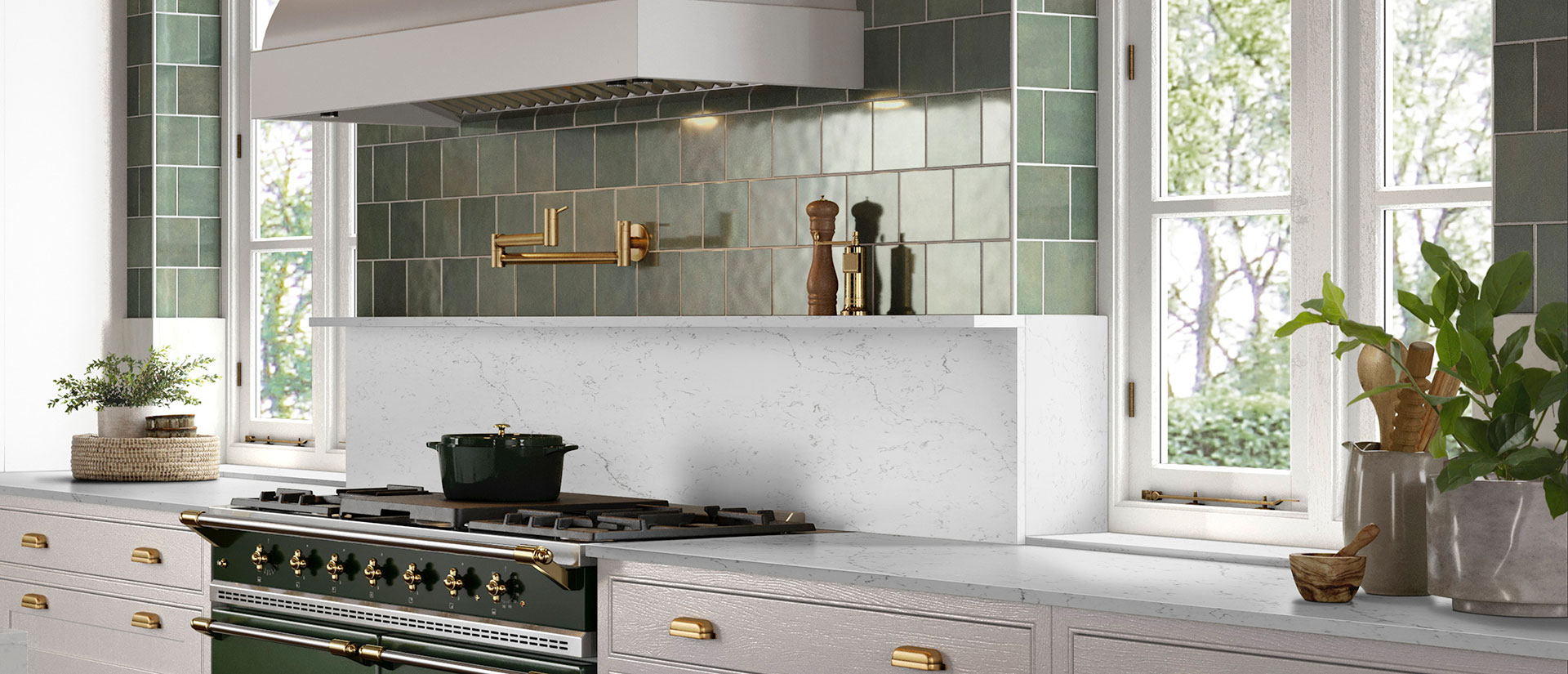 Description: Calacatta Lavasa features a warm white background with distinct short brown veins intermingled with long diagonal lines. This unique veining pattern adds warmth and movement, making it an excellent choice for designs that require a touch of natural elegance and visual interest.