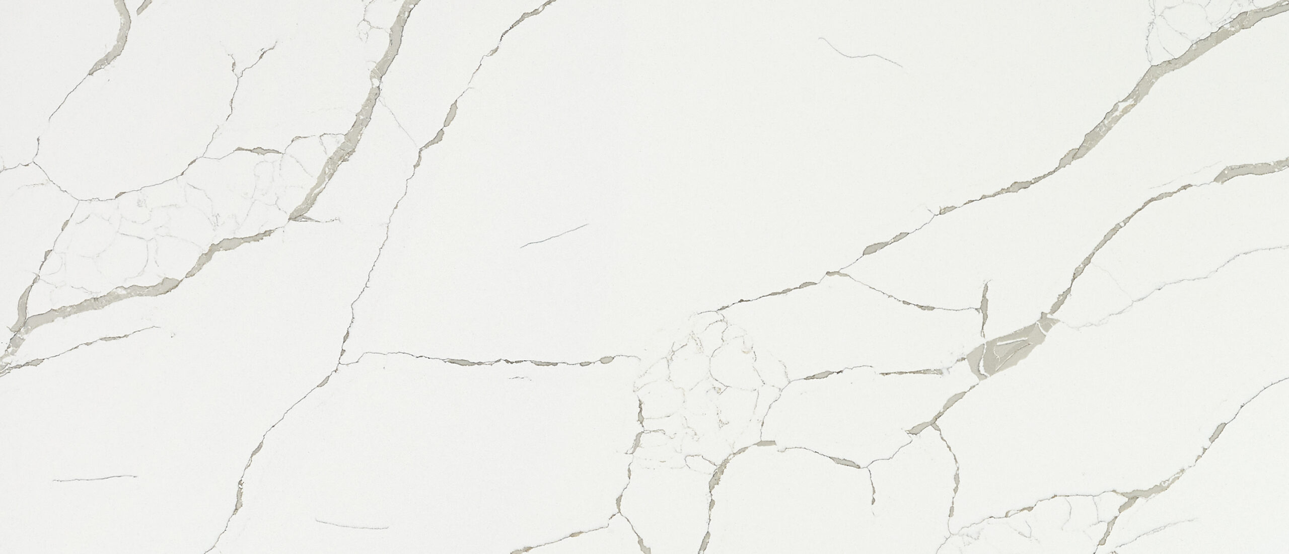 Description: Calacatta Laza is a favorite for its soft white background and dramatic, ropy veining in pale and mid-tone gray. The bold movement of the veins brings a natural and luxurious feel, often used to create stunning waterfall edges and focal points.