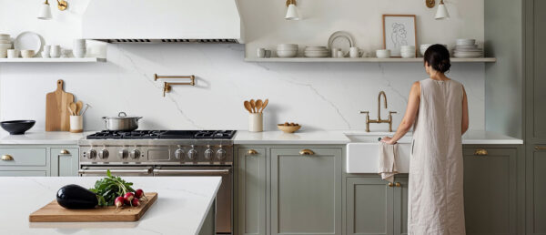 Description: Calacatta Miraggio features a creamy white background with soft, hazy gray veining, creating a dreamy, watercolor effect. This unique design offers a less structured, more organic feel than traditional marble patterns.