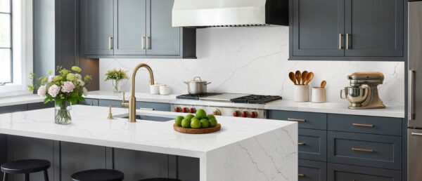 Description: Capture the tranquility of the ocean with Calacatta Miraggio Seaglass. This unique surface features luminous white quartz rippled with veins of sea-green, aqua, and chocolate brown, creating a refreshing coastal vibe enhanced by the depth of LumaLuxe Ultra®.