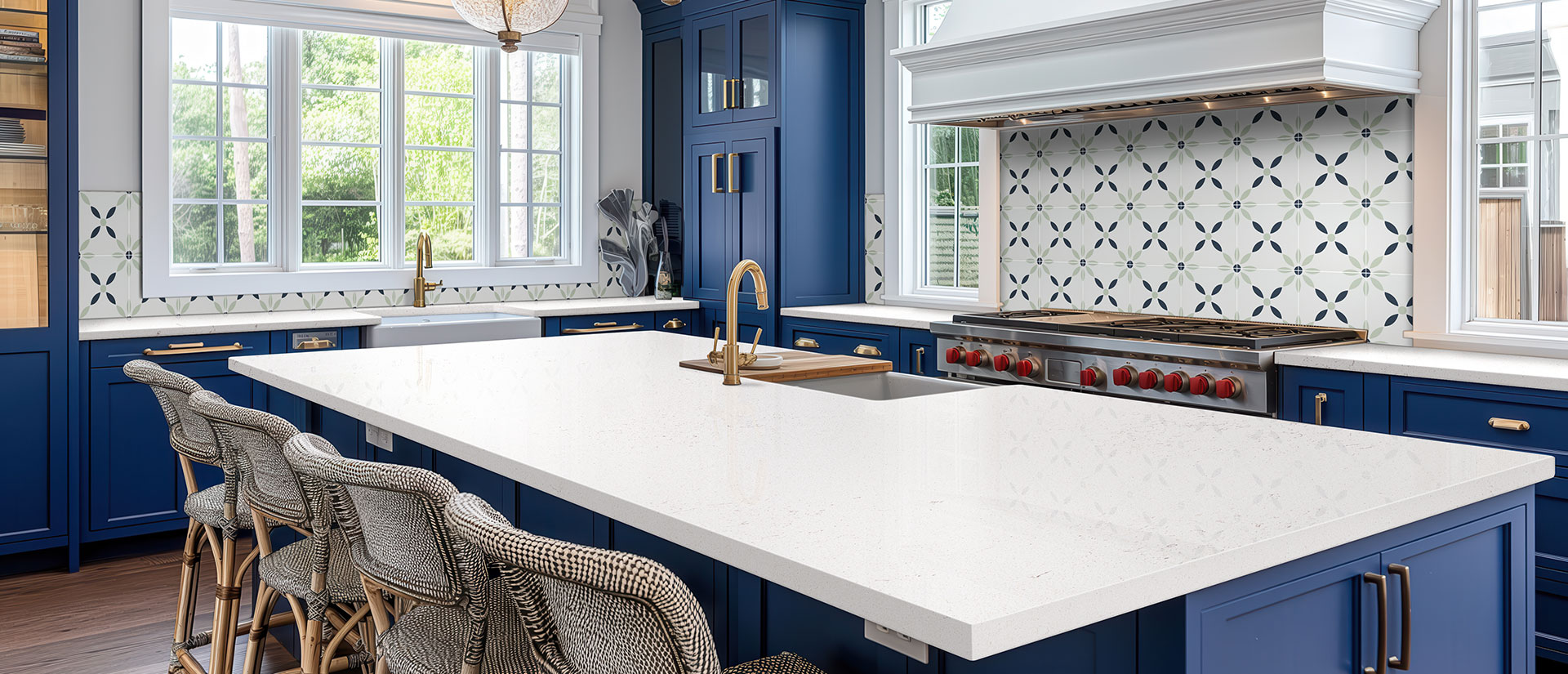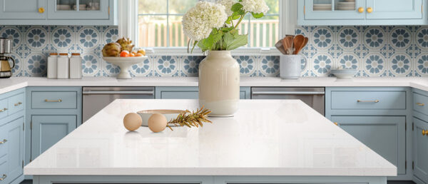 Description: Carrara Marmi features a classic warm-white background with fine, delicate gray veining for a traditional Carrara marble aesthetic enhanced by quartz durability.