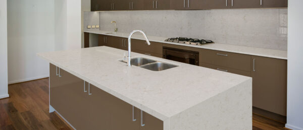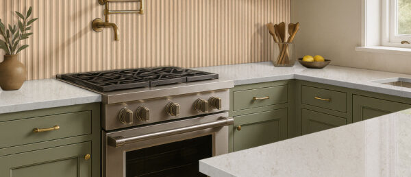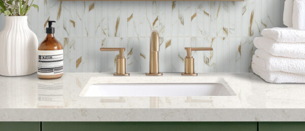 Description: Cashmere Taj is a sophisticated quartz designed to mimic the look of Taj Mahal quartzite. It features a soft, creamy background enriched with bronze and gold Carrara-style veining, offering a warm and luxurious aesthetic that fits perfectly in transitional and traditional designs.