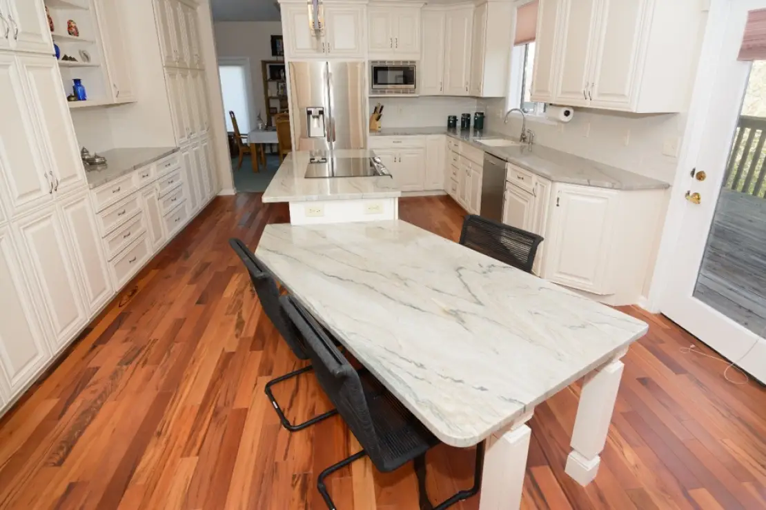 Description: Dumont is known for its incredible texture and warm color palette of creams, beiges, and soft greys. The available Brushed finish enhances its natural, stone-like feel, making it a tactile delight.