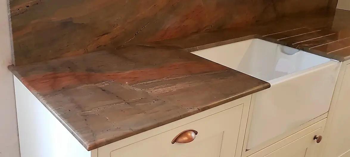 Description: A stone with depth and character. Exuberant Brown features rich chocolate and coffee tones swirled with lighter creams. It adds instant warmth and grandeur to traditional and rustic designs