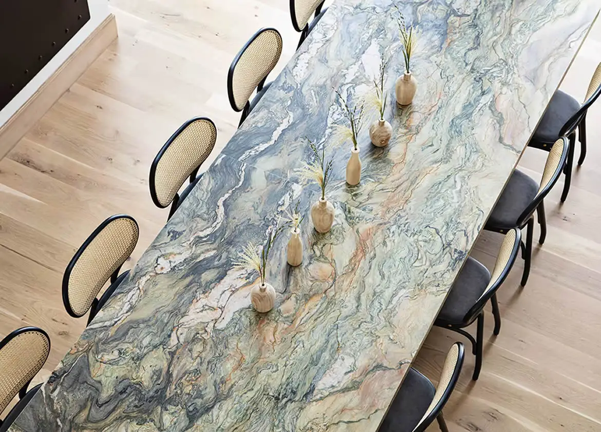 Description: Fusion is not just a stone; it’s an explosion of color. Featuring a chaotic mix of rust reds, deep greens, and blues, this stone is designed to be the absolute focal point of a room.