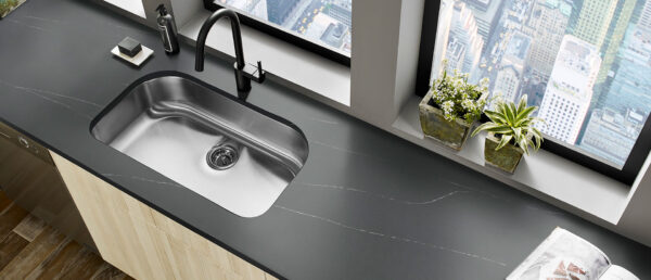Description: Soapstone Metropolis offers the look of natural soapstone with a slate-gray background and long, delicate white veins. Available in both polished and concrete finishes, it brings a moody, urban sophistication to the home without the maintenance of real soapstone.